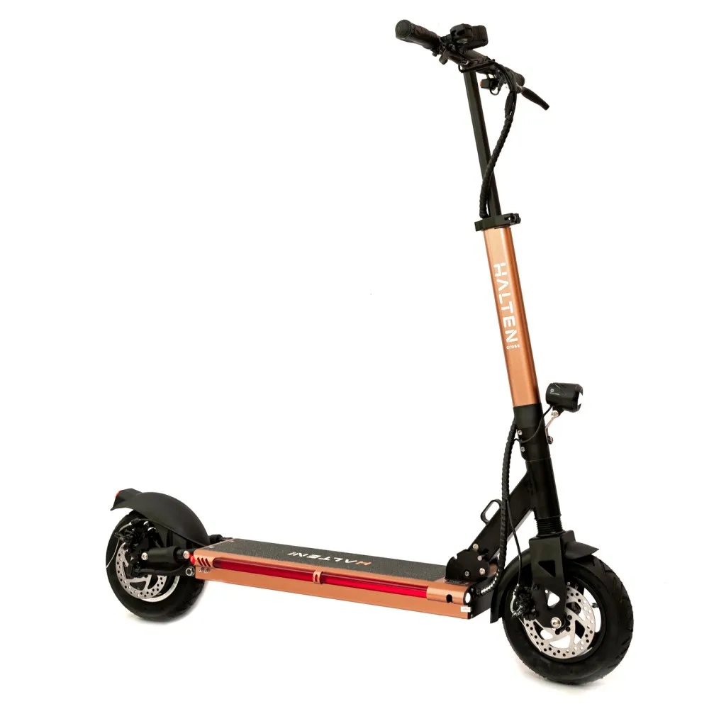HALTEN занимает одну из лидирующих позиций по производству электросамокатов, которые удовлетворили желания даже самых искушенных покупателей. Электросамокаты давно себя зарекомендовали как удобное и доступное средство передвижения, поэтому специалисты компании разработали новую модель городского электросамоката HALTEN CROSS v.2. В чем преимущество данной модели? Благодаря низкочувствительной мягкой подвески, она подойдет для разных дорожных покрытий, сможет преодолеть любое бездорожье и водитель сможет насладиться ездой.