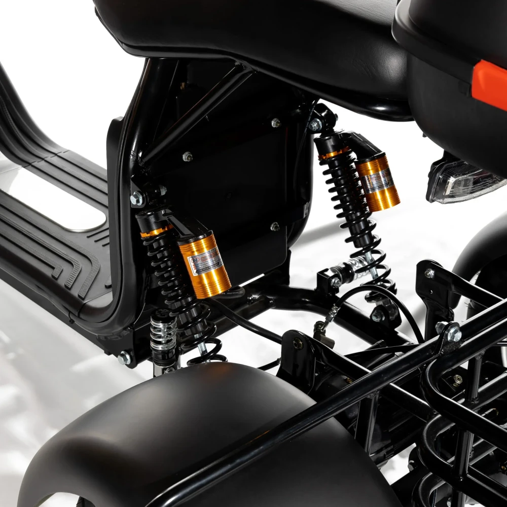Трехколесный электроскутер Citycoco GT X11 Trike черного матового цвета - это передовой городской транспорт, который обеспечивает максимальную мощность, стабильность и комфорт при передвижении по улицам города.