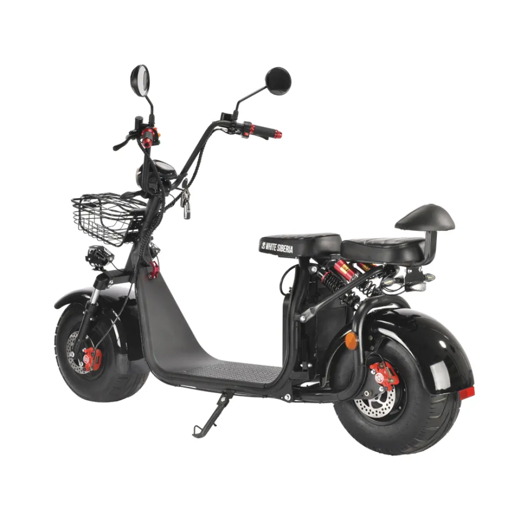 Особенности технических и преимущественнных характеристик мототехники заключаются в следующем. Электроскутер с мощностью в 2000 Вт и массивными пневматическими колесами на одной подзарядке со скоростью 50 км/час может мчаться на протяжении 50 км. Масса изделия – 74,5 кг. Грузоподъёмность – 260 кг. Указанный параметры подтверждают факт предназначения техники. Она может использоваться подростковым и взрослым поколением.