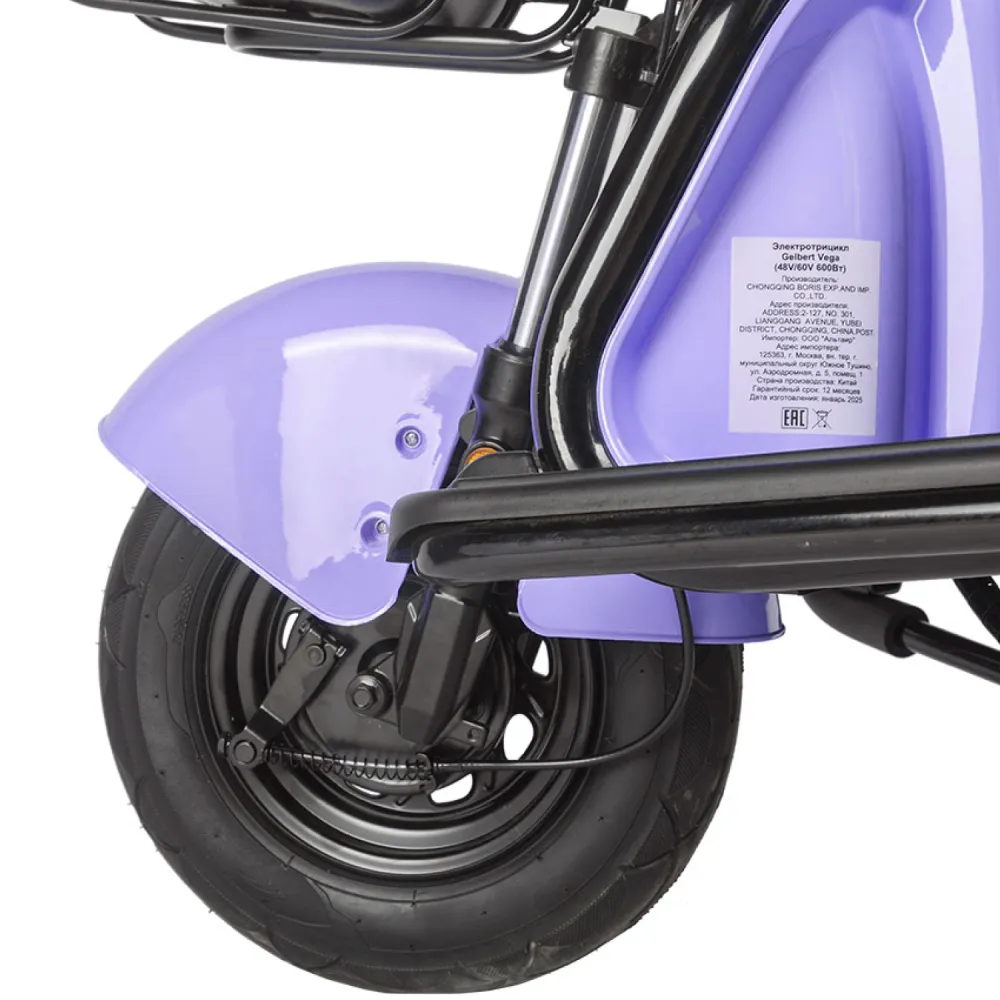 Электротрицикл Rutrike Gelbert Vega 48V/60V 600Вт Фиолетовый