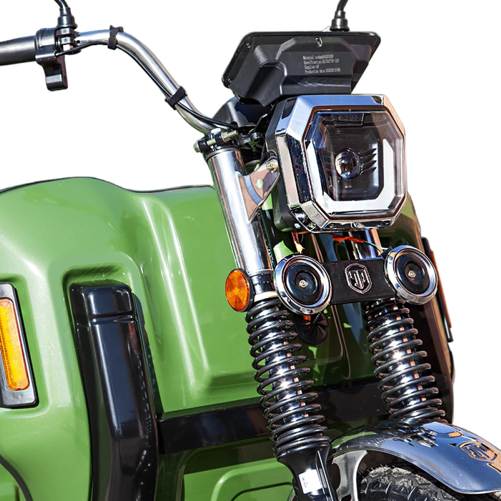 Грузовой электротрицикл Rutrike Маяк 1600 60V1000W зеленого цвета - это надежное и эффективное транспортное средство для перевозки грузов. Его мощность, грузоподъемность и барабанные тормоза делают его отличным решением для различных бизнес-потребностей.