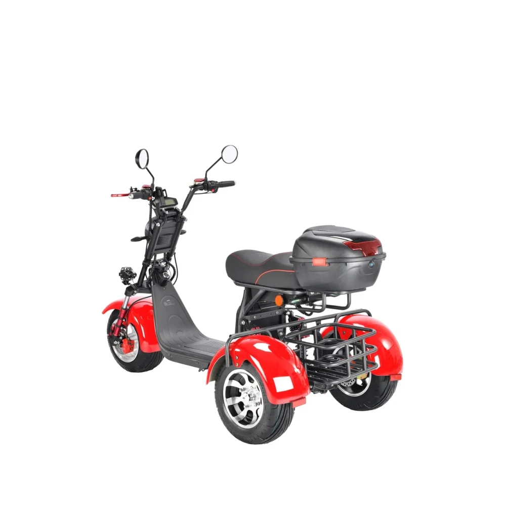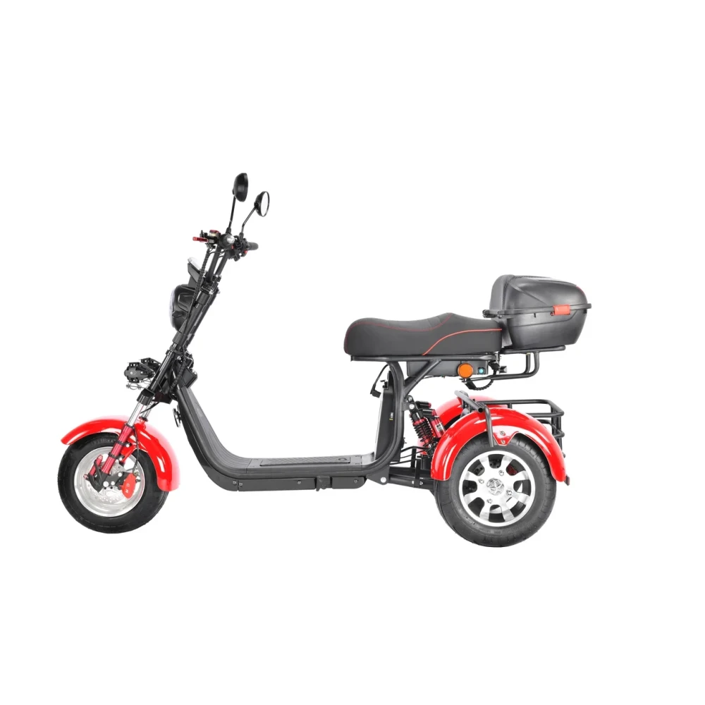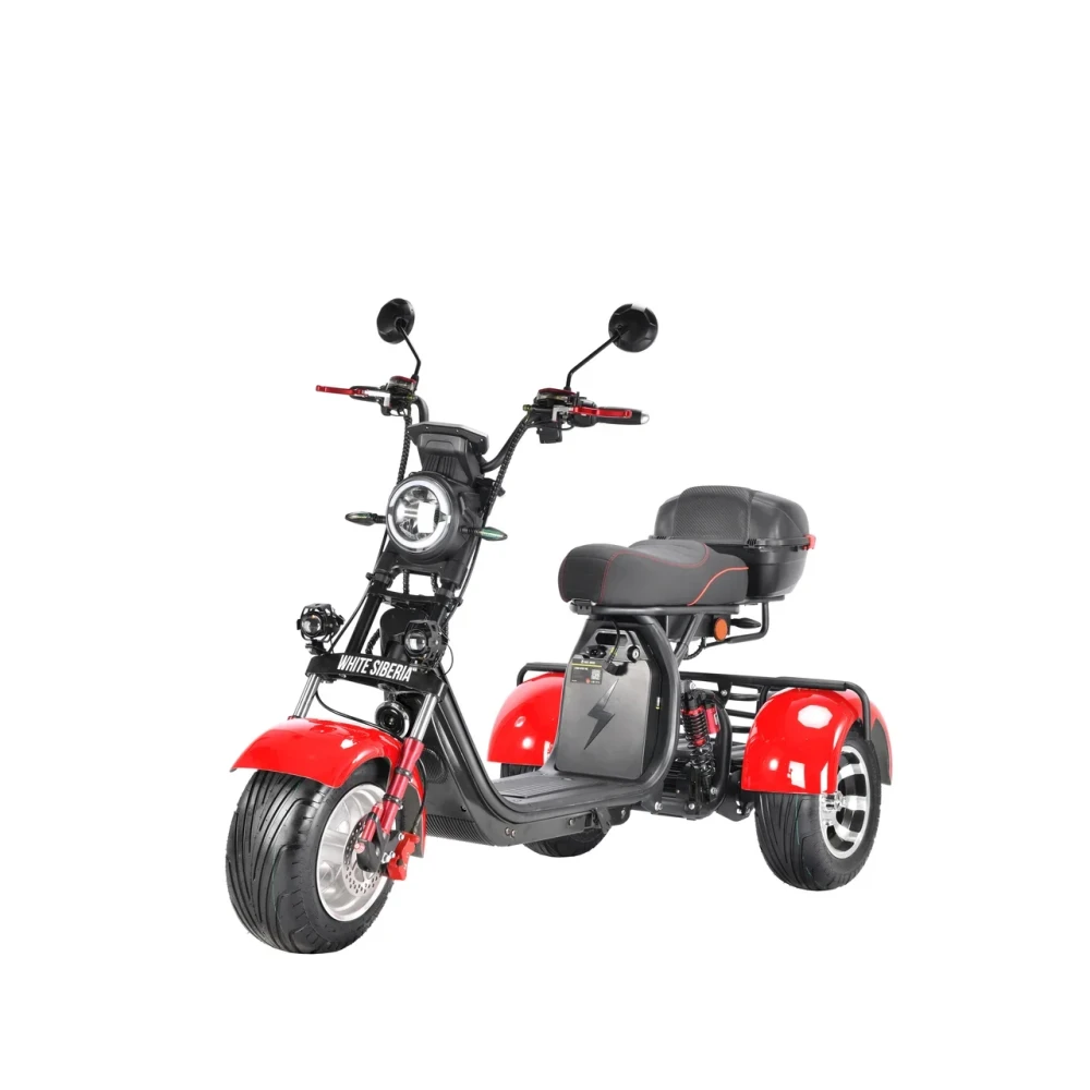 Трехколесный скутер CityCoco WS-Pro 3000W Trike+ красный - быстрый городской транспорт с литыми дисками и широкими колесами.