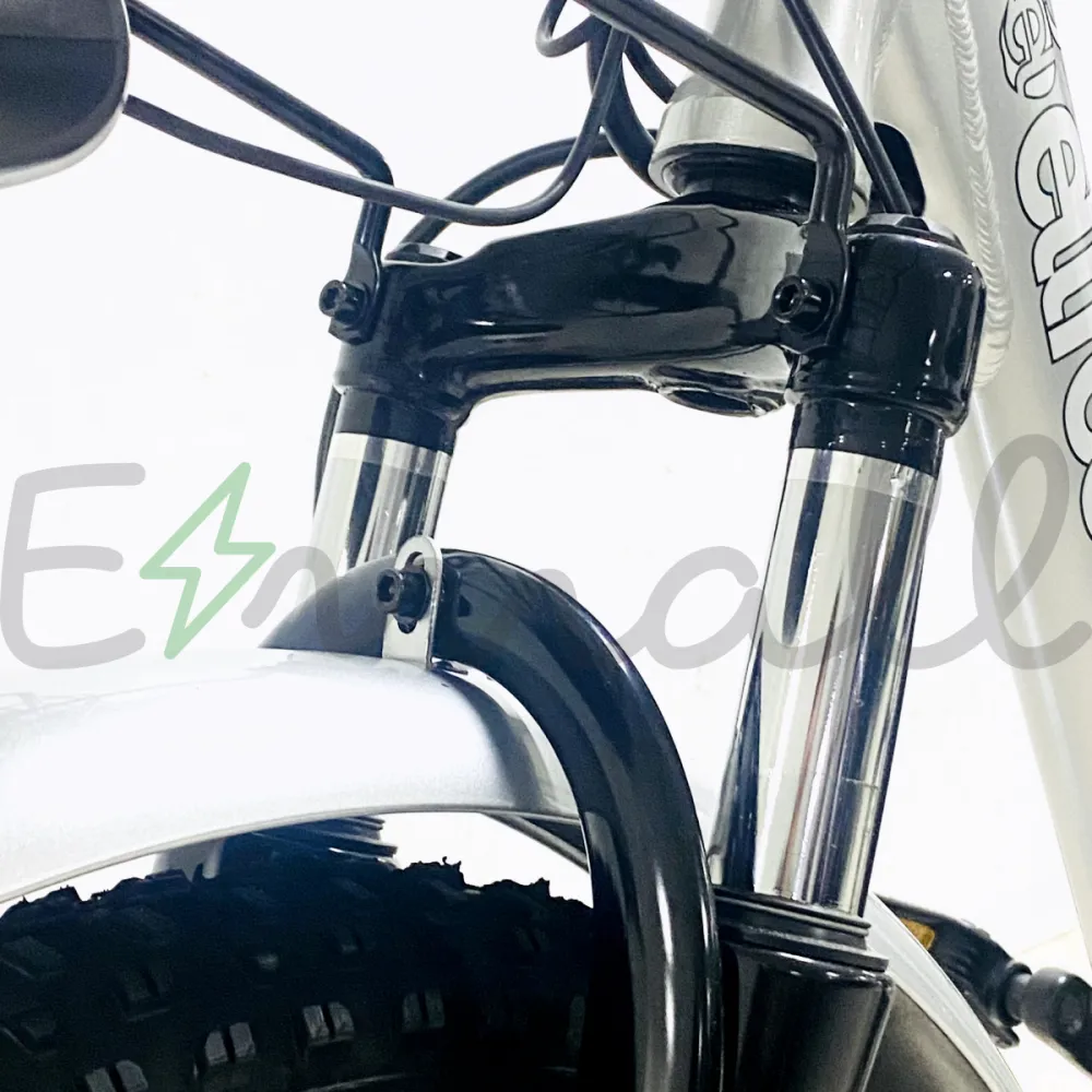 Электровелосипед имеет широкие колеса диаметром 20 дюймов, развивает скорость до 35 км/час, выдерживает нагрузку в 110 кг.