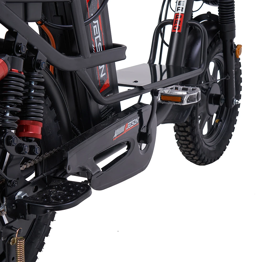 Jetson Monster CROSS 1200W 60V30Ah NEW 2024 — это воплощение мощности и инноваций в одном электровелосипеде. С максимальной скоростью 60 км/ч и запасом хода до 80 км, этот велосипед идеально подходит как для городских, так и для загородных поездок. Благодаря емкости аккумулятора 30Ah и мощному двигателю в 1200W, вы получите динамичное ускорение и надежность на любом участке пути. Двойные задние амортизаторы в сочетании с передними обеспечивают плавность хода даже на неровной поверхности, а дисковые гидравлические тормоза гарантируют безопасность в любых условиях. Особенностью модели является трансформируемое сиденье, которое легко превращается в просторный багажник для курьерской сумки. 16-дюймовые пневматические колеса с внедорожными покрышками обеспечивают отличное сцепление, а большая яркая фара освещает путь в темное время суток.