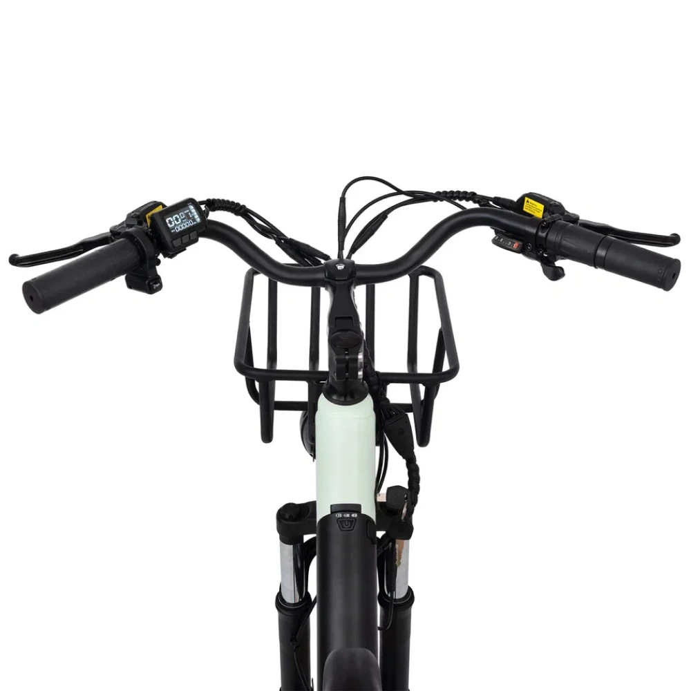 Передний амортизатор позволяет комфортно преодолевать неровности дороги, делая поездки по паркам особенно приятными. Практичная корзина спереди и багажник сзади добавляют удобства для перевозки вещей. Yokamura City Menthol — идеальный выбор для тех, кто ценит стиль, комфорт и функциональность в одном велосипеде.