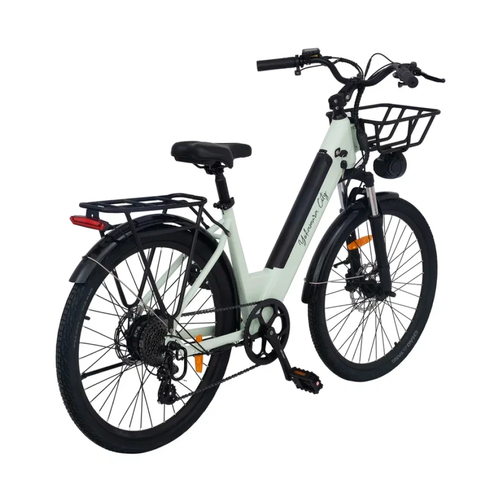 Электровелосипед Yokamura City Menthol — это гармоничное сочетание ретро-стиля и современных технологий. С мятной нежной рамой и элегантным дизайном, он привлекает внимание и создает атмосферу изысканности. Мощный двигатель на 500 W позволяет развивать скорость до 35 км/ч, а емкость аккумулятора 10.4 Ач обеспечивает пробег до 50 км на одном заряде.