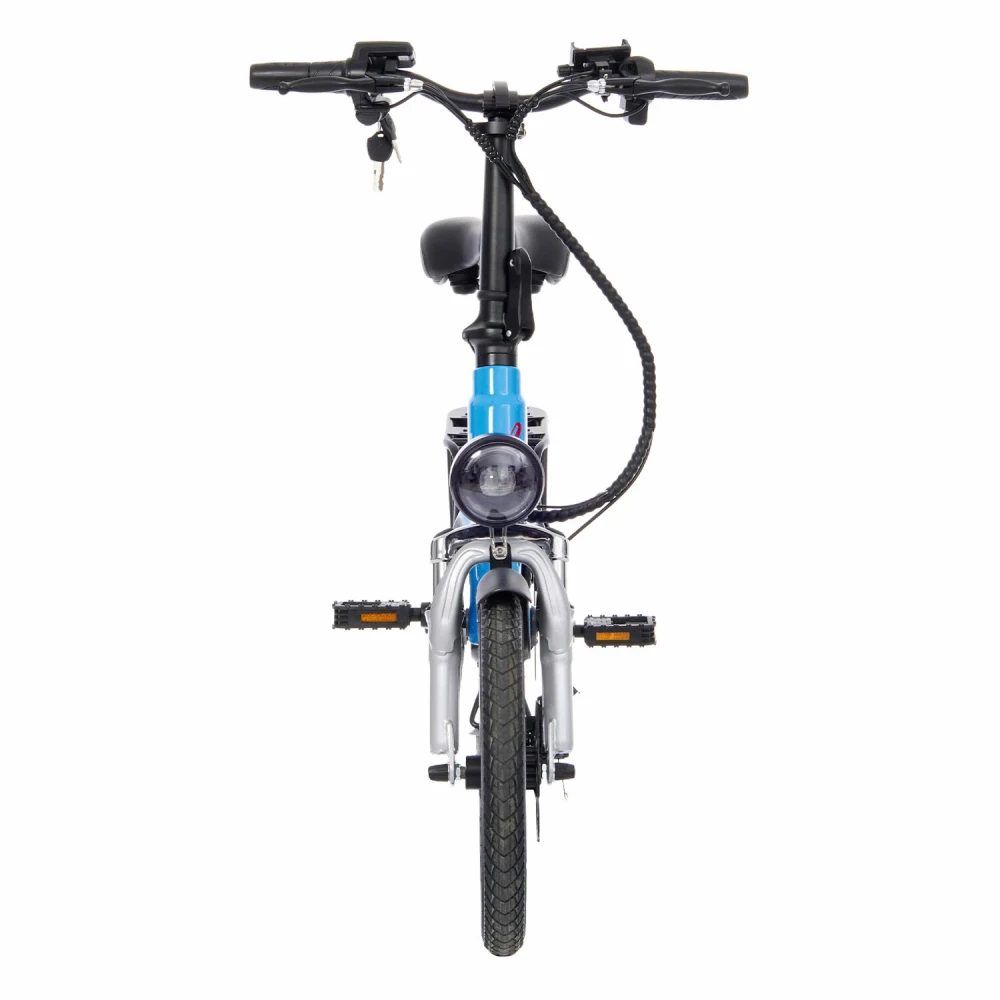 Его стильный синий цвет притягивает взгляд, а материал рамы из магниевого сплава делает его легким и прочным. С пробегом до 50 км на одном заряде, этот электровелосипед позволяет исследовать окрестности без ограничений.