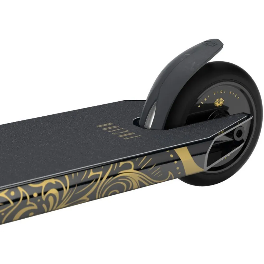 Трюковой самокат Fuzion Z-Series Z350 2022 Prophecy черно-золотой – выглядит презентабельно, считается лучшим подарком райдеру-экстремалу. Модель занимает лидирующие позиции в ТОПе продаж этого сезона. Востребована российскими трюкачами и ездоками из СНГ.