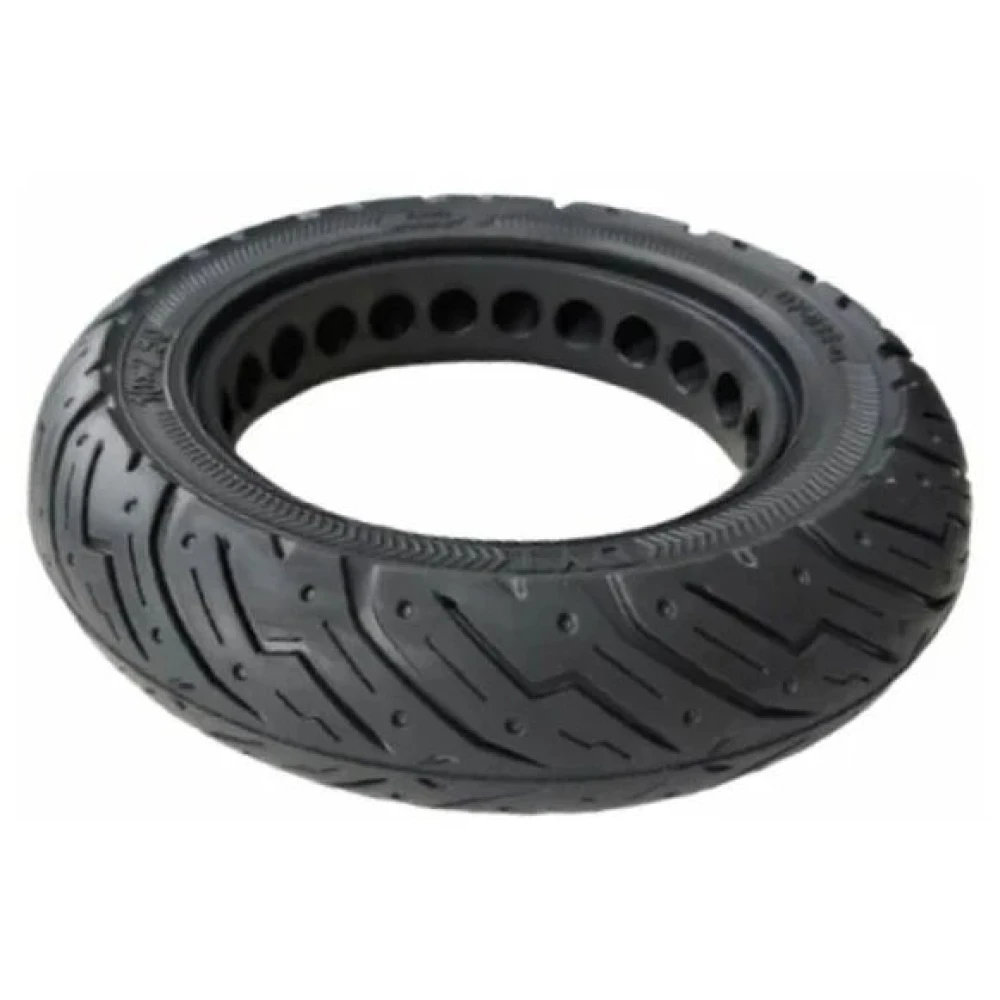 Литая/бескамерная покрышка 10Х2.50 ДЛЯ KUGOO/JOYOR имеет перфорацию для самокатов, что обеспечивает более плавный ход.  Это отличный вариант, если вы хотите кататься не только по ровной дороге, но и по бездорожью, не переживая за проколы колеса.